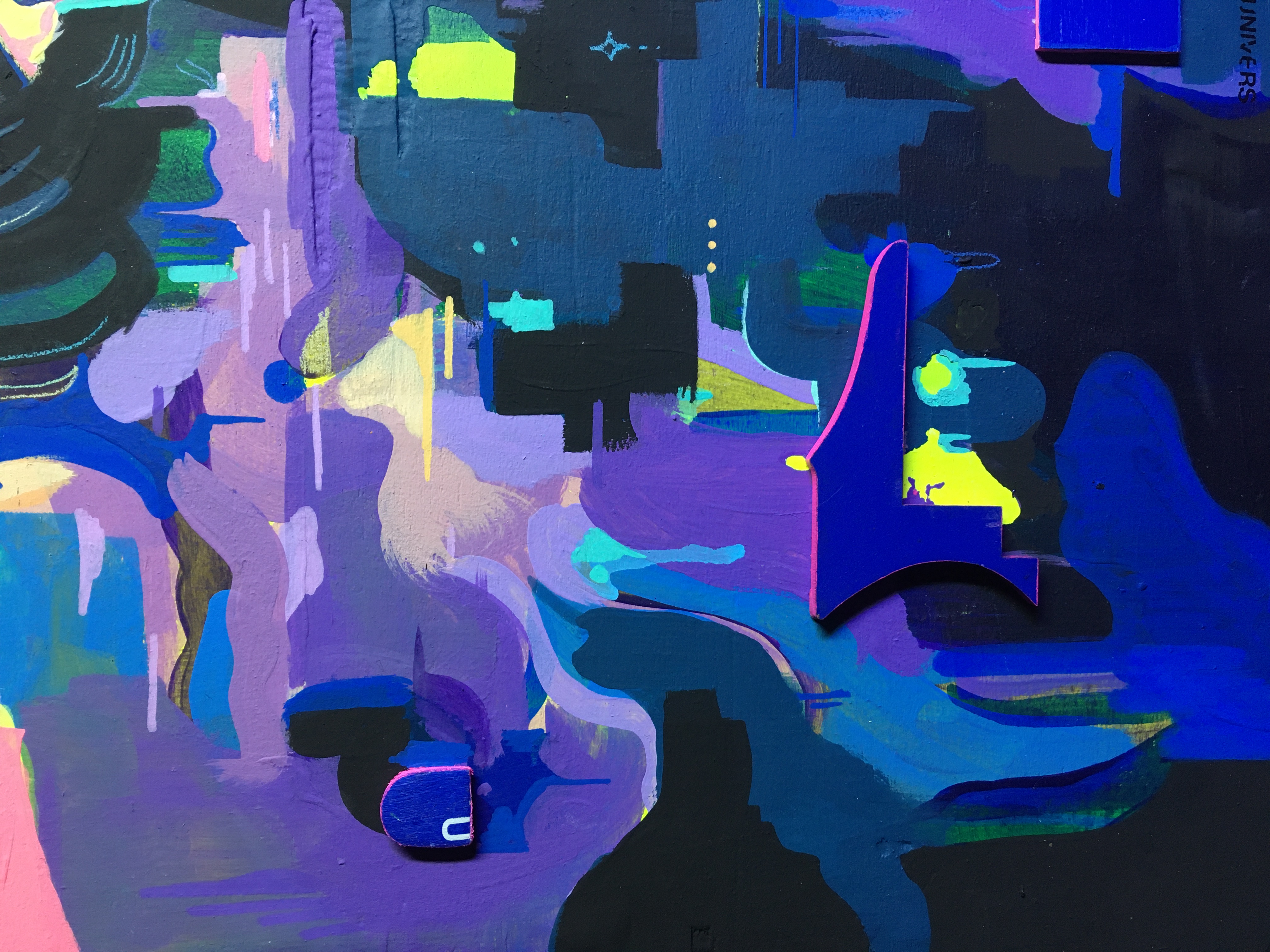 Mixed Media on board. Wood pieces. Lysergic Fragment. 62x71x3cms.